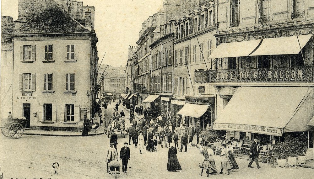 La rue du Bassin au début du XXe siècle (actuel croisement entre le Quai Alexandre III et la rue Maréchal Foch. Les quais conservent aujourd'hui encore leur physionomie générale © Cherbourg-en-Cotentin, bibliothèque Jacques Prévert