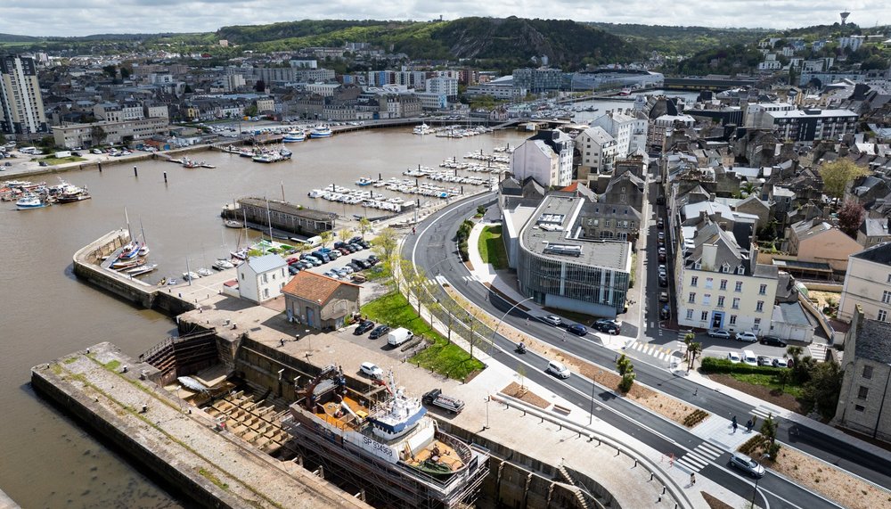 Vue par drone du bassin du commerce en 2024 © Thomas Zibrik pour la Ville de Cherbourg-en-Cotentin